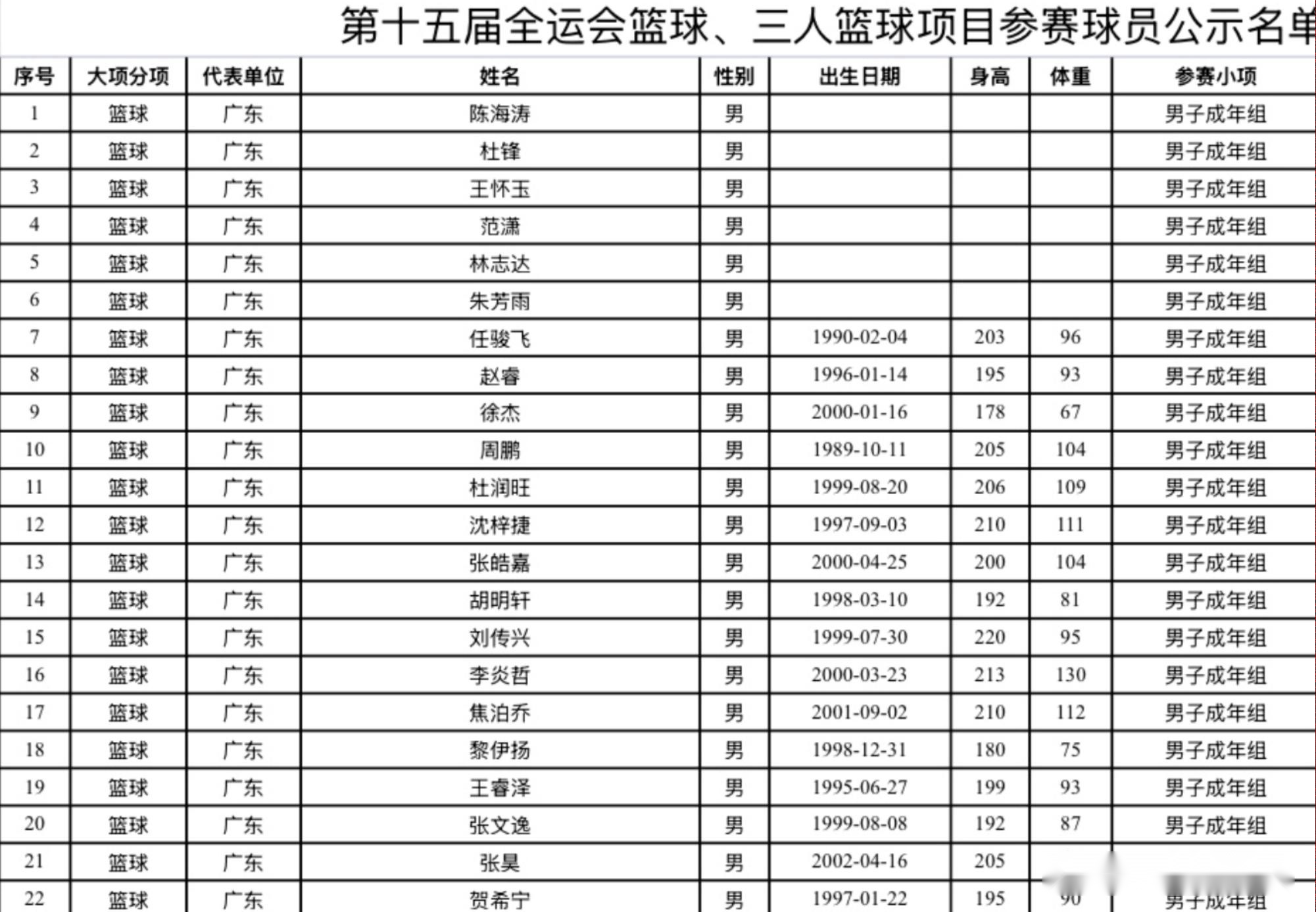 今天广东官宣了男篮的全运会名单,整体的人数还是非常多的,分别是赵睿、徐杰、周鹏、杜润旺、沈梓捷、张皓嘉、胡明轩、刘传兴、李炎哲、焦泊乔、黎伊扬、王睿泽、张文逸、张昊、贺希宁、任骏飞。