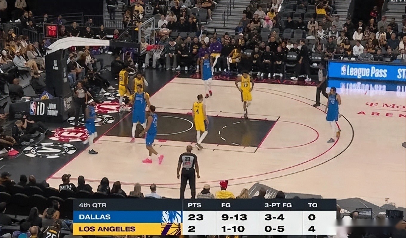 一个是湖人的替补席阵容一塌糊涂,你要知道末节全队18中3、三分9中0仅得到8分,被独行侠轰出37-8大胜27分,这样的数据直接把人给看傻了。大家都知道湖人的角色球员不怎么样,特别是替补席的实力。再看看这场比赛的二三阵,摆在球场上就和送分一样,不仅进攻端弱,防守端也弱,真的没法看了。