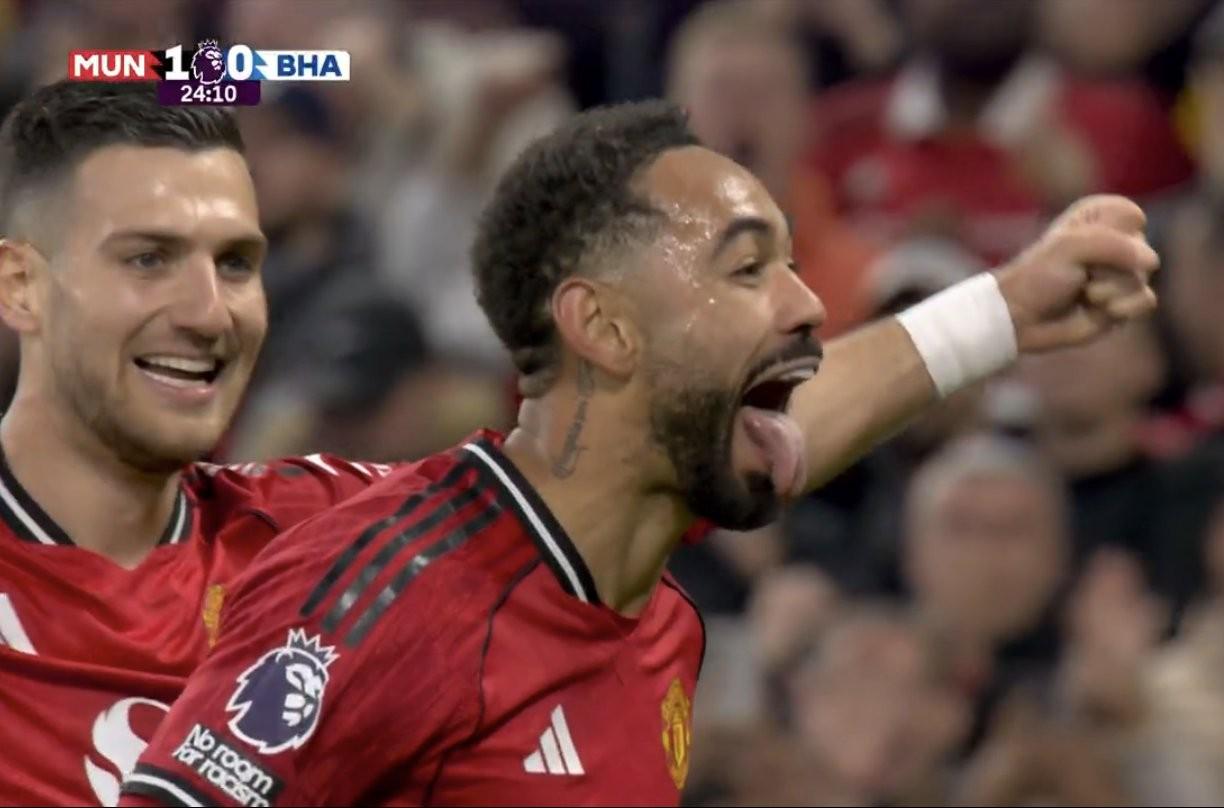 对阵布莱顿破门,马特乌斯-库尼亚攻入曼联生涯首球