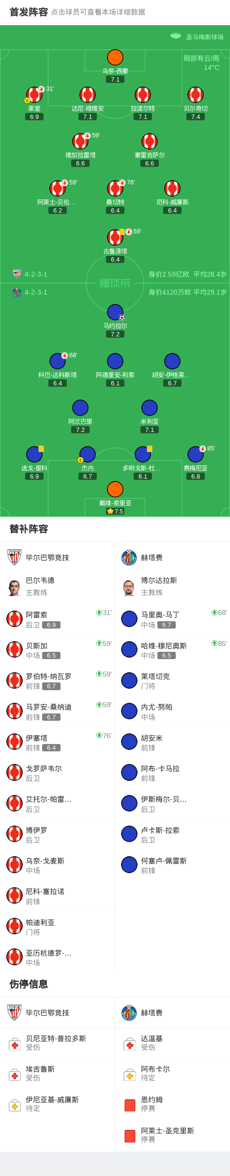 北京时间10月26日,西班牙足球甲级联赛第10轮,毕尔巴鄂竞技主场迎战赫塔费。比赛中,赫塔费球员马约拉尔攻入全场唯一进球。最终,赫塔费以1比0战胜毕尔巴鄂竞技。