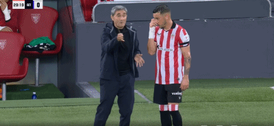 第27分钟,肢体语言丰富,巴尔韦德摇摇晃晃给替补球员讲战术