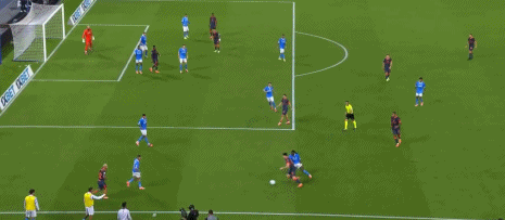 第15分钟,那不勒斯后场出球失误,劳塔罗近距离射门被扑出