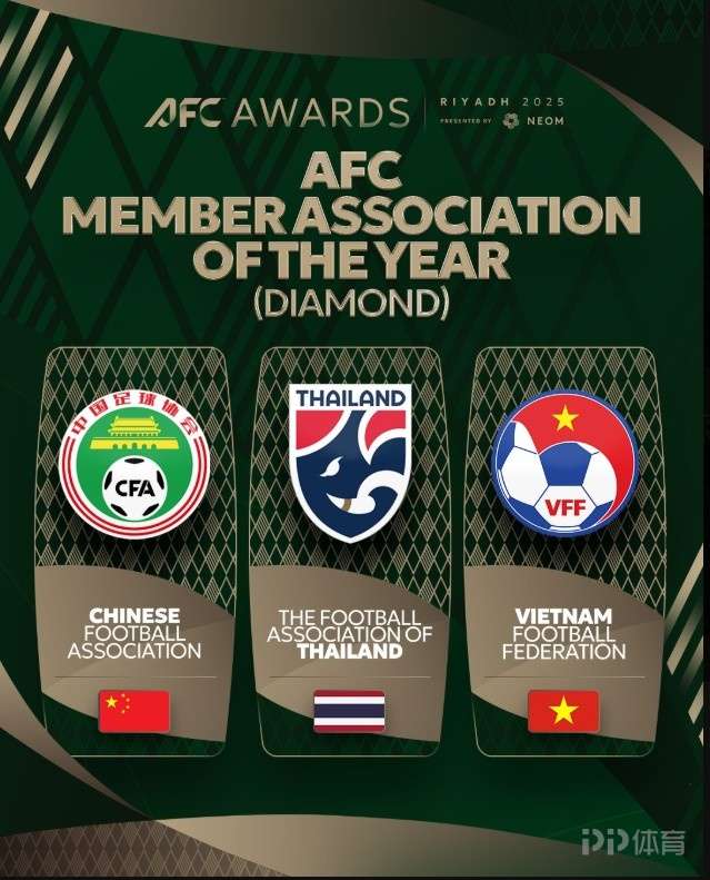 亚足联官方公布年度钻石协会奖项提名,中国足协在列。