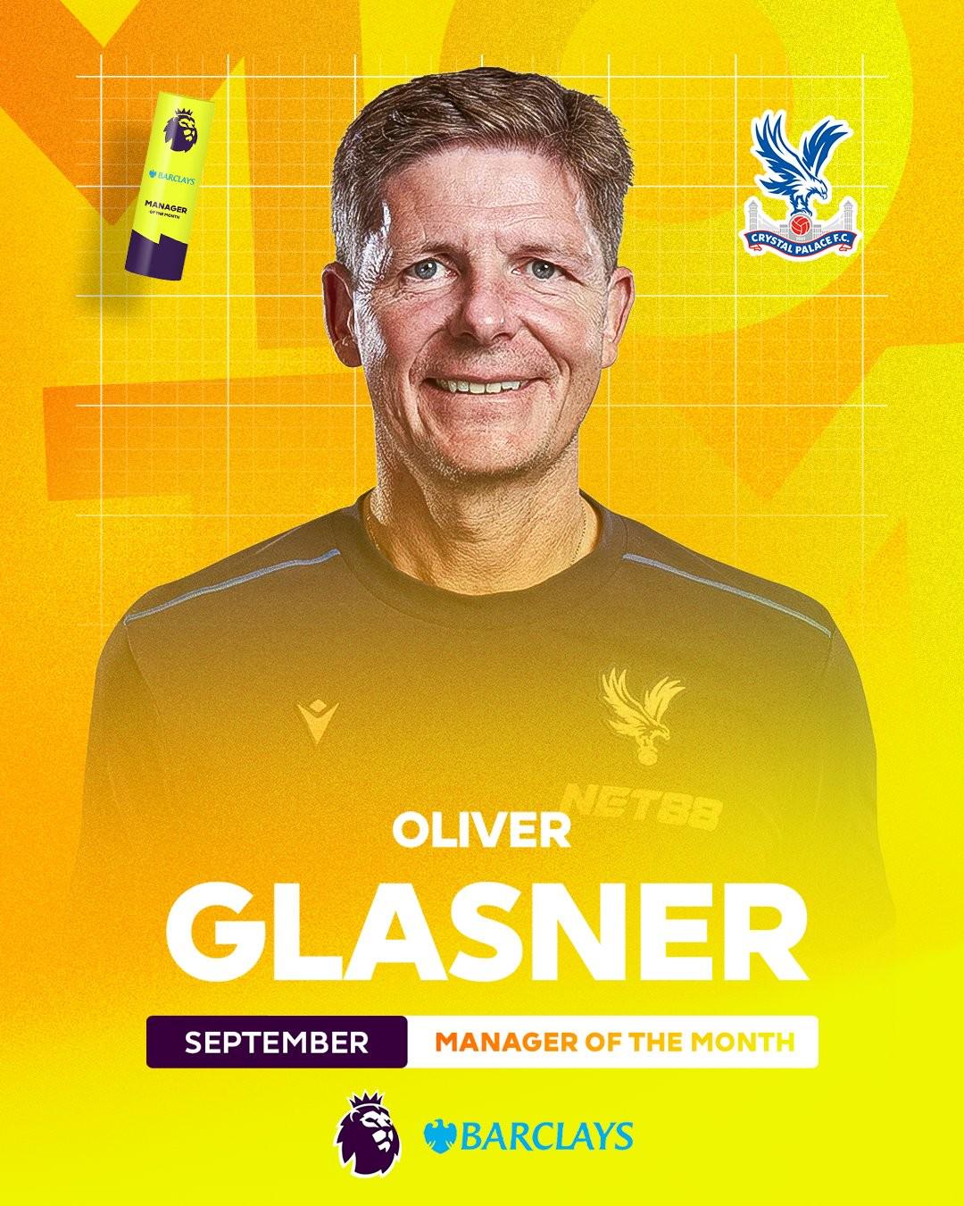 官方:水晶宫主帅格拉斯纳当选英超9月最佳教练