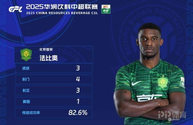 中超官方消息,国安前锋法比奥当选为第26轮最佳球员,他在对阵大连英博的比赛中上演帽子戏法。