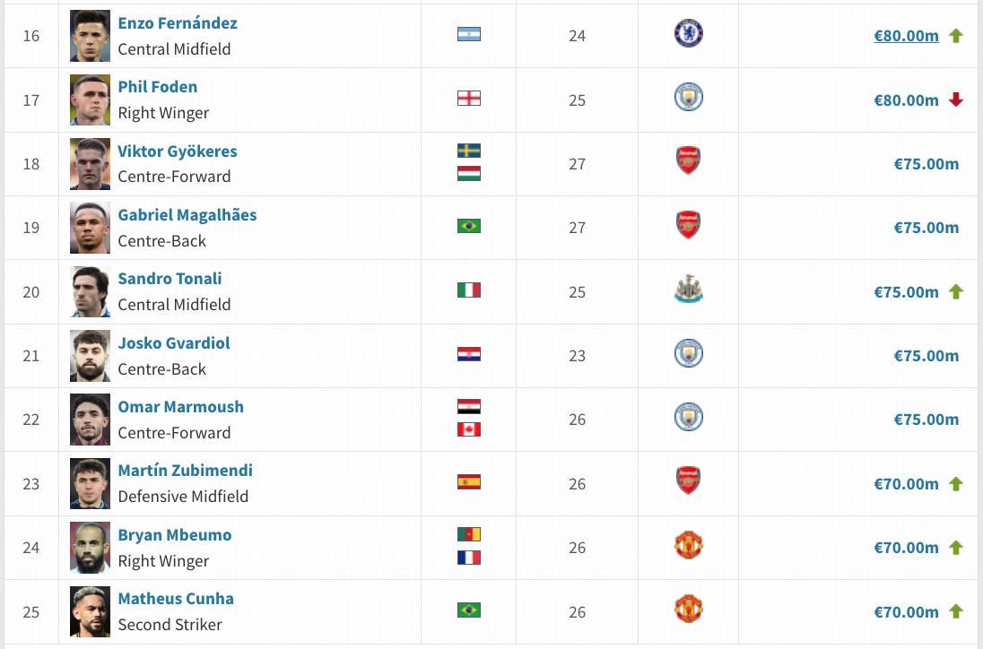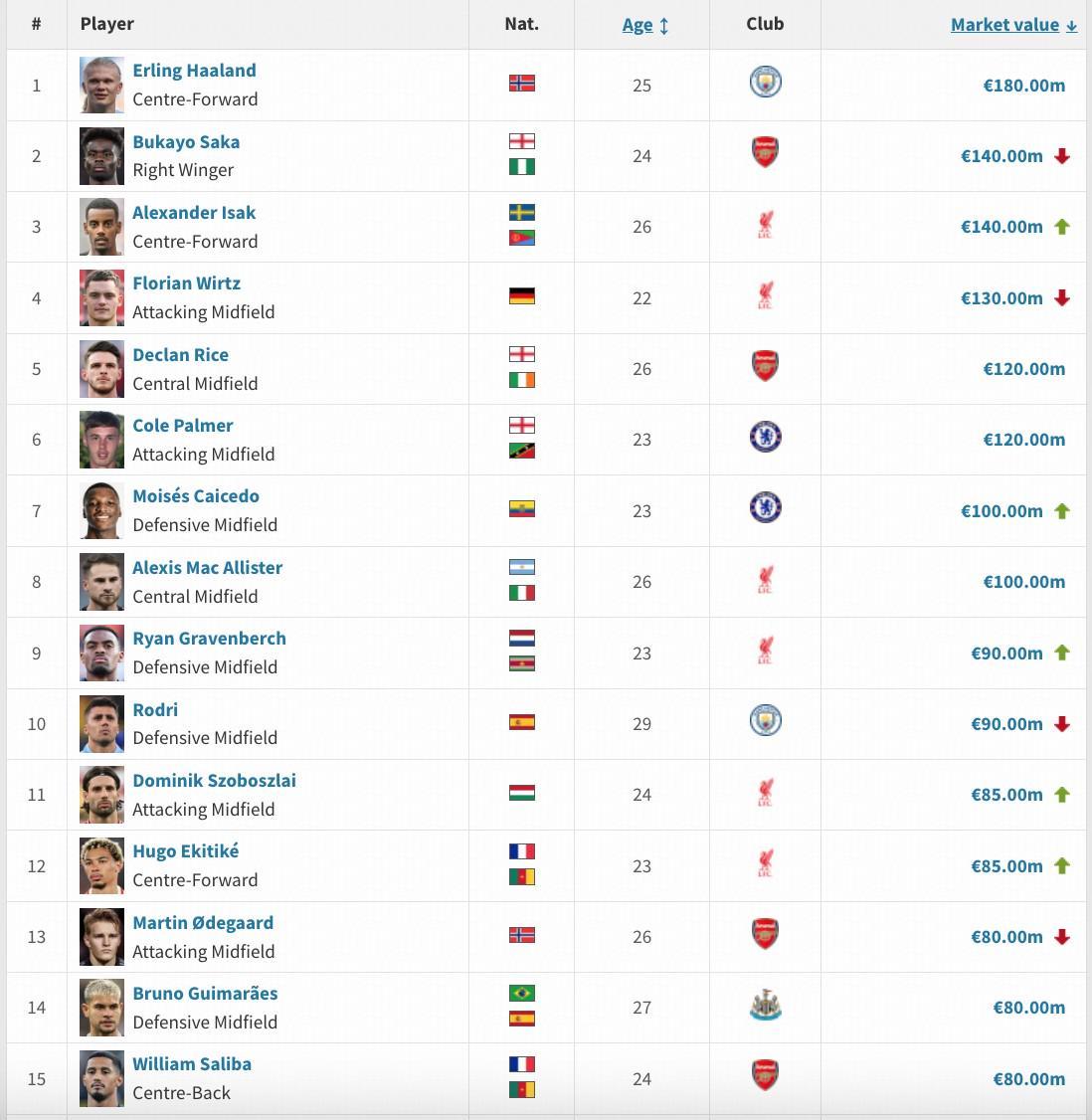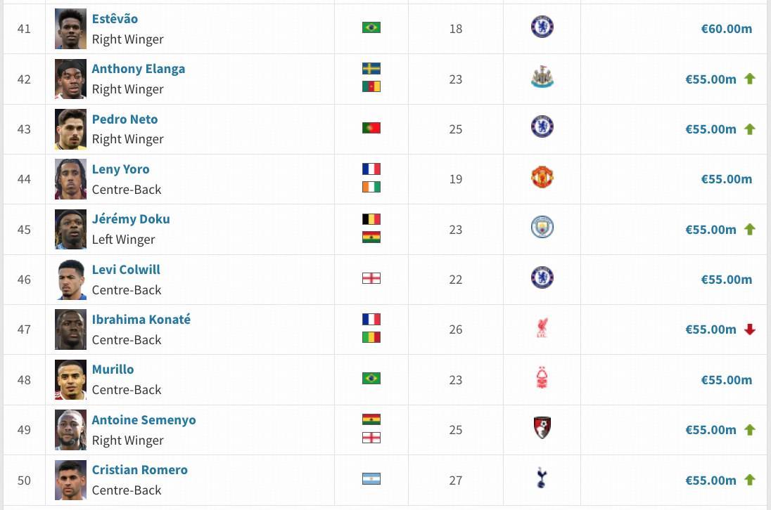 英超身价TOP50