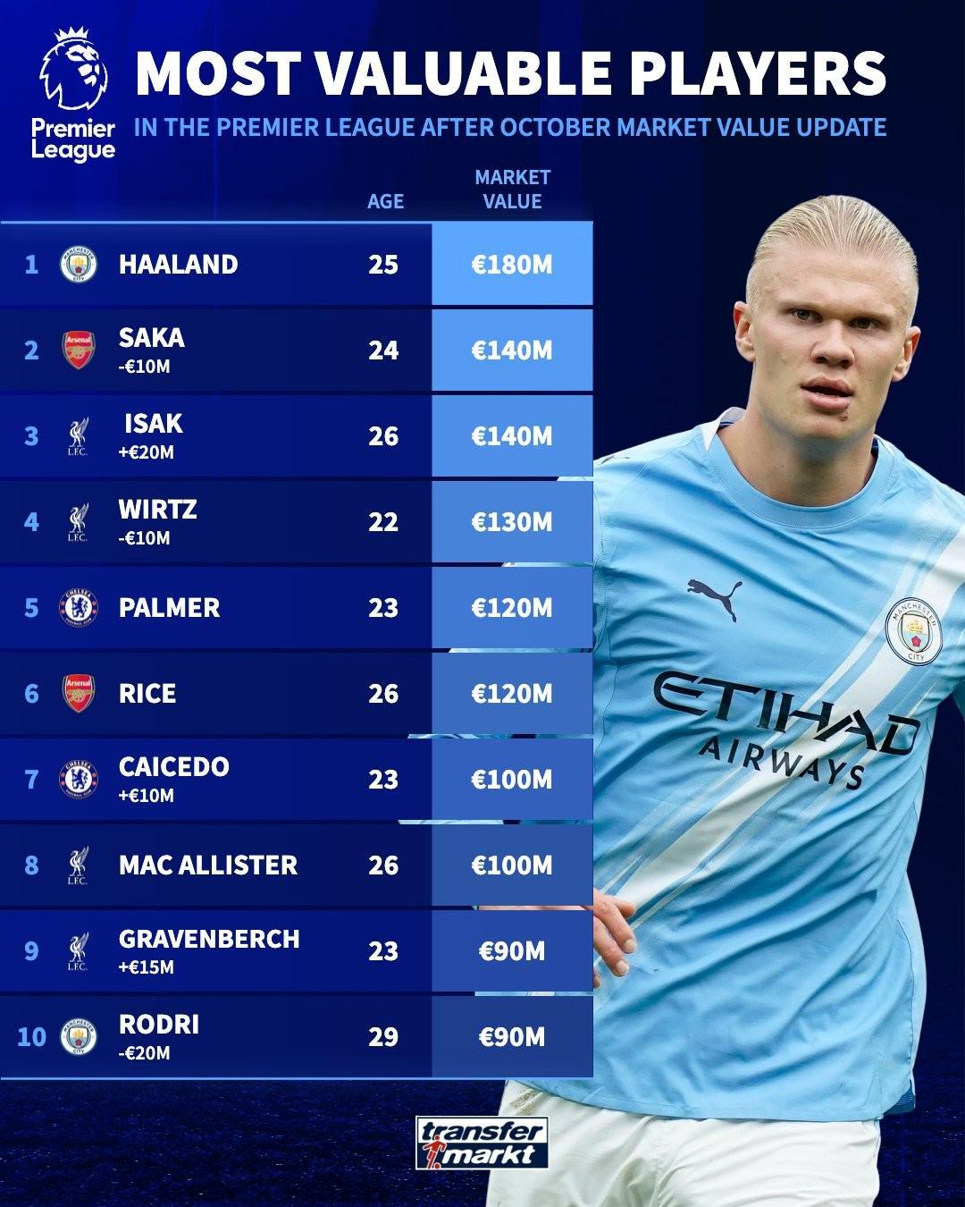 英超身价TOP10